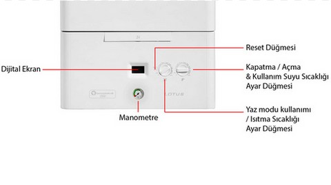 * Kullanım Suyu Sıcaklık Kontrolü: Kullanım suyu 35-65°C aralıklarında tercihe bağlı olarak kontrol edilebilir.