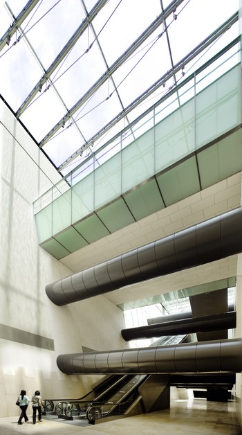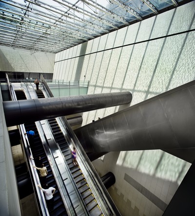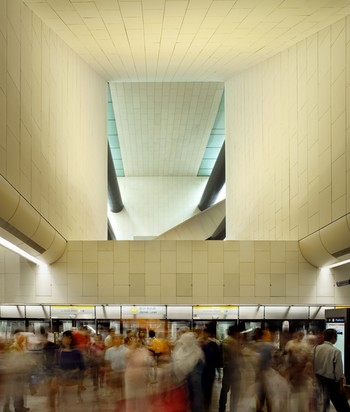 Işığı ve kent görüntüsünü içeri alan cam çatı örtüsü, içerden dışarıya sıkıcı, labirentte dolaşıyormuş hissi vermesi olası bir yolculuk deneyimini, heyecan verici bir yolculuğa dönüştürüyor. Bu görsel temas, yaşanacak olası bir acil durum halinde yolcuların panik yaşamadan çıkışı bulmalarını da garantiliyor. İstasyonda doğal aydınlatma, gün boyunca yapay ışıklandırmaya gerek bırakmayacak şekilde düzenlenmiş. İstasyon boşluğu, büyük bir ışık yansıtıcısı olarak tasarlanmış. Havalandırma şaftları, çevredeki mimari dokunun algılanmasını kesintiye uğratmayacak biçimde araziye gizlenmiş.