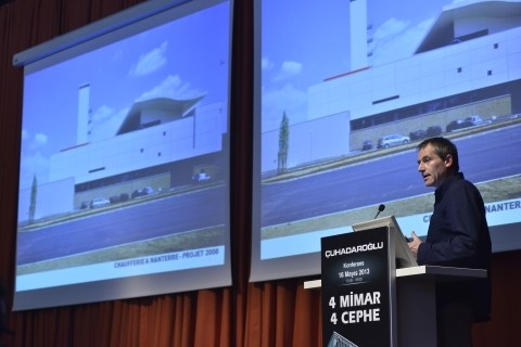 Cepheyi, bir yapının kimliği olarak nitelendiren BVFG Architects'ten Frédéric Gadan ise, Fransa'da çeşitli zamanlarda gerçekleştirdikleri ve farklı fonksiyonlara sahip projelerden örnekler verdi. Sunumuna, sonrasında gerçekleştirdikleri tasarımların dna'sını oluşturduğunu söylediği ve bir belediye sarayı olarak projelendirilen Maire deHarnes ile başlayan Gadan, cephe tasarımında netliğin, akışkanlık ve saydamlığın, renk kullanımının kendileri için önemine işaret etti.