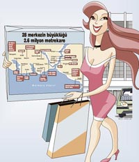 Türkiye'de son yıllarda hızla artan inşaat projelerinin en önemli ayağından birini alışveriş merkezleri oluşturuyor. Türkiye'deki 149 alışveriş merkezinin 53'ünün bulunduğu İstanbul'da, 28 yeni alışveriş merkezinin yapımı sürüyor. Bu yeni alışveriş merkezlerinin toplam kapalı alan büyüklüğü ise 2.6 milyon metrekare olacak. Soysal Danışmanlık tarafından her yıl yayınlanan "Perakende Kataloğu"nun bu yılki çalışması tamamlandı. "Soysal Perakende Kataloğu 2007" adıyla yayınlanan çalışmaya göre, Türkiye'de yapımı süren 57 alışveriş merkezinin, 28'i İstanbul'da. Toplam 2.6 milyon metrekarelik alana sahip olacak İstanbul'un yeni alışveriş merkezlerinde, kiralanabilir alan toplamı 1.2 milyon metrekare, yer alacak mağaza sayısı ise 3 bin 974.