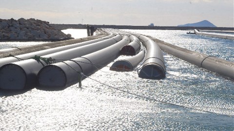 Su, 80 kilometre uzunluğundaki deniz boru hattı ile deniz yüzeyinden 250 metre derinlikte askıdaki bir boru hattı vasıtasıyla Girne yakınlarında yapılacak Geçitköy Barajı’na aktarılacak.