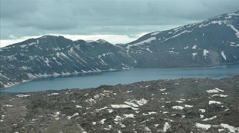 Saha çalışmalarına katılan BEÜ Rektörü Prof. Dr. Necmettin Elmastaş, "Nemrut Jeopark Çalıştayı" kapsamında Nemrut Krater Gölü'nde arazi çalışması yürüttüklerini söyledi.