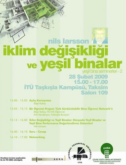 İTÜ Sustainable Energy Research Group (SERG ) tarafından Çevre Dostu Binalar Derneği (ÇEDBİK) sponsorluğunda İklim Değişikliği ve Yeşil Binalar konulu bir konferans düzenleniyor. Konferansın konusu, Türkiye'de son dönemde önemle üzerinde durulan sürdürülebilirlik, bina sertifikasyon sistemleri ve iklim değişikliği olarak belirlendi.