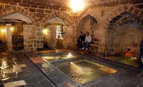 yıkadığı, tuvaletlerin bulunduğu tarihi yapıda, "Çimeceklik" denilen duş alma