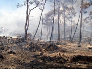 çıktığı tahmin edilen yangında, yaklaşık 150 hektar kızılçam ormanı kül