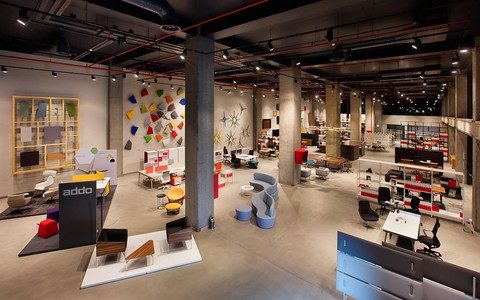 Addo Furniture, akustik düzenlemelerden derinlik özelliklerine kadar ince bir tasarımın ürünü olan showroomunda çalışma hayatı için tasarlanan özel koleksiyonlarını sergiliyor.