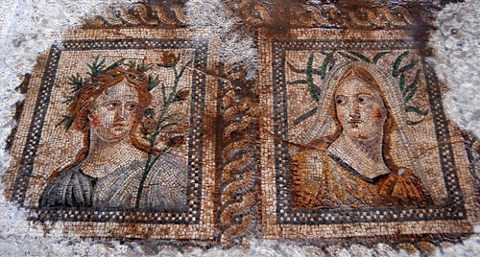 ve eksiksiz güzel kadın mozaikleri var. M.S. 2. yüzyılda oda tabanına dönemin