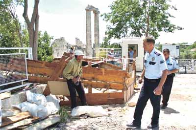 pazartesi günü iş makineleriyle 2 bin 500 yıllık Apollon Tapınağı’nın sur