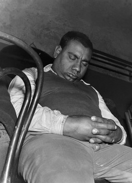 | Sabahçı kahvesinde uyuyan adam. İstanbul, 1955