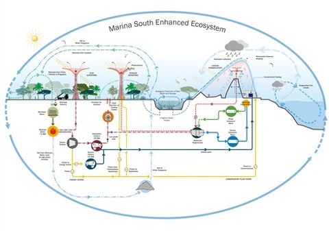 Singapur’daki Gardens by the Bay, Bay South (GBBS) projesi, uyumlu tasarım ve çapraz disiplinlerin, yüksek performanslı ve çevreci binalarda nasıl sonuçlar sağlayabileceğinin iyi bir örneği. Projede; yapının ikinci cephesinin, güneş ışığının en üst düzeyde iç mekâna girmesine izin vermesi sayesinde bir taraftan doğal aydınlatma sağlanırken bir taraftan da ısıl yükün azaltılması tasarımın temel ilkelerini oluşturuyor. Bay South Gardens, Singapur’un Marina Koyu’ndaki yeni kent merkezinde, 52 hektar büyüklüğünde geri kazanılmış ve peyzaj düzenlemesi yapılmış bahçeler üzerinde bulunuyor. Hâlâ yapım halinde olan projenin 2011 yılı sonunda bitmesi planlanıyor. Seralar ve bahçeler, bir takım su ve enerji döngüleri doğrultusunda birbiriyle bağlantılı olarak tasarlanmış. Projede, sıra dışı tasarım çözümleri ile enerji tüketiminin en aza indirgenmesi istenmiş. Bu ölçütlere ek olarak yapı sistemi ve pasif tasarım çözümleri arasında yer alan bir dizi yapı kontrol seçeneklerine de yer verilmiş. Enerji konusunun ötesinde masterplanda su döngülerine de büyük önem verilmiş. Atelier Ten, masterplan üretme sürecinin bir parçası olarak, projenin yapım sürecinin farklı aktörlerine yönelik bir dizi sürdürülebilir uygulama planı (SIPs) hazırlamış. Projenin temel bileşenlerinden biri olan 'Süper Ağaçlar', beton ve çelikten inşa edilmiş. Strüktürde, çevresi ince bir çelik tabaka ile kaplı içi boş bir beton çekirdek bulunuyor. Çekirdeğin en üstü 'tepe', hemen hemen pürüzsüz bir yüzey sağlayan bir mambran ile kaplı. Tüp güneş kolektörleri de süper ağaçların tepelerinde yer alıyor. Buradan elde edilen ısı mümkün olduğunda nem yakalama işleminde kullanılıyor. Ek olarak süper ağaçların tepelerinde bulunan fotovoltaik piller, projenin karbon salım düzeyini de düşürüyor. Süper ağaçların üst kısımlarında 6 tane dal merkezden çevreye uzanıyor. Bu dalların üzerinde, güneş kolektörleri ve fotovoltaik piller bulunuyor. Fotovoltaik paneller, günışığı açısı ve gölgeye, güneş kollektörlerinden çok daha duyarlı. Bu nedenle gerektiği gibi konumlandırılmadıkları zaman enerji üretimi önemli ölçüde düşebiliyor. Bu nedenle süper ağaçlar üzerine fotovoltaik paneller yerleştirilirken hem estetik hem de verimlilik göz önünde bulundurulmuş.