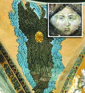 altı kanatlı melek figüründen birinin yüzü açıldı. Mozaiğin bugüne kadar çok iyi