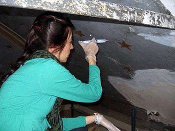 son çalışmaların devam ettiği kilisede kullanılan özel kimyasallarla, zeminde