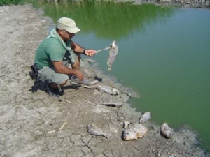 gözlenen kuşlar, üç gün sonraki ziyarette ölü bulundu. Bölgede ölü balıklar ve