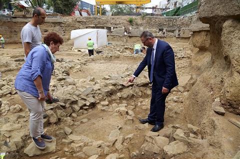 İstanbul Kültür ve Turizm Müdürü Coşkun Yılmaz, İstanbul Arkeoloji Müzeleri Müdürü Zeynep Kızıltan ile İstanbul'da yapımı süren Kabataş-Beşiktaş-Mecidiyeköy-Mahmutbey metro hattının Beşiktaş istasyondaki kazısında bulunan tarihi kalıntılara ilişkin çalışmaları yerinde inceleyerek, yetkililerden bilgi aldı.