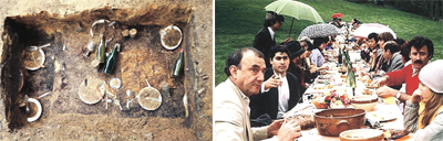 sanatçı Spoerri ve birkaç konuğu pikniğin ortaya çıkarılması sırasında hazır