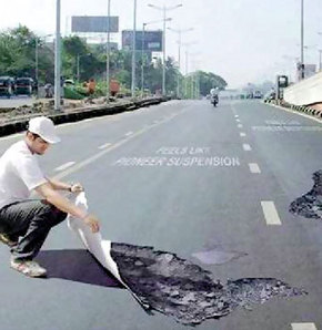 çukur fotoğrafları yapıştırılarak, sürücülerin yavaş gitmesi amaçlanıyor.