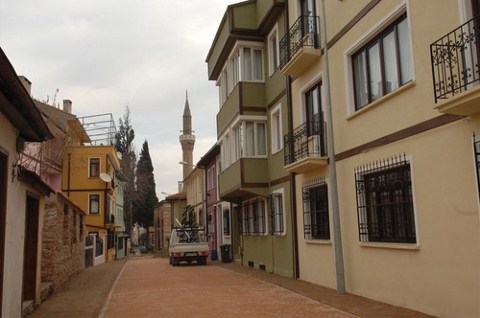 mimarinin yoğun olduğu sokaklardaki evler restore ediliyor, tüm cepheler elden
