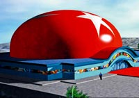 Üzerinde ay yıldız olan 42 metre çapındaki kırmızı kubbe uydudan Türk bayrağı