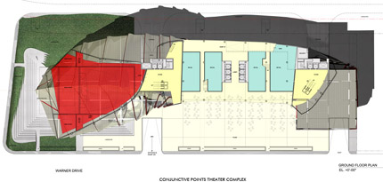 “Conjunctive Points” Tiyatro Merkezi, benzersiz ve yenilikçi sanat performanslarının yaratımında sanat ve teknoloji sinerjisinden yararlanmak üzere yapılmış, çoklu kullanıma sahip bir proje. Büro, mağaza ve restoran alanlarını da içerecek merkez, ticaret ve sanat alanlarını entelektüel olarak birleştirerek bağlantılı mekânlar bütünü oluşturmak için tasarlandı. Proje ayrıca, anfitiyatro, güneye bakan bir meydan ve park gibi bağlantılı projeyle kamusal kullanım alanları sağlayacak.