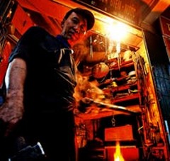 , Demirciler Sokağı'nın son demircisi. İs içindeki kolları