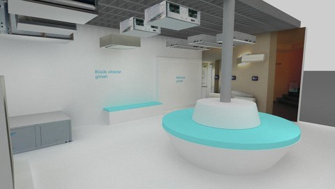 Bu kadar teknoloji içinde; toplantı odalarında insanların rahat bir nefes alabileceğini düşündük. Bu nedenle toplantı odalarının tasarımı tamamen doğa formlarından oluştu. Bazı toplantı odalarında deniz kenarı bazılarında ise ormanlık alan etkisi yarattık. Tüm mobilya ve aksesuarlar buna göre seçildi ve uygulandı. Burada da Mudo Konsept çok yardımcı oldu, avizelere varana kadar bütün aksesuarları ve birçok mobilyayı Mudo’dan temin ettik. Ama odaların dışındaki bütün detayları kendimiz ürettik.