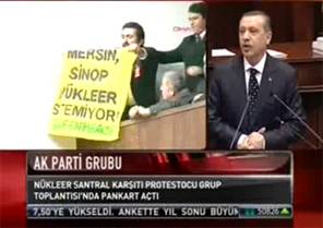 nükleer santral karşıtı pankart açtı. Erdoğan, yaka paça dışarı