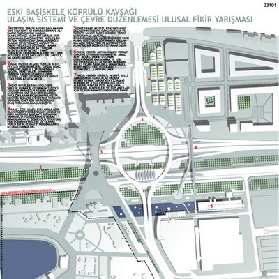 Yarışma alanının düzenlemesinde, kentin bu noktasındaki ulaşım ağlarının [demiryolu/ karayolu] sağlıklı kurgulanması, bu ağlarla ayrılan kent parçalarının birleştirilmesi ve kentsel yaya hareketinin sürekliliğinin sağlanması esastır. Amaç, makro düzeyde bir planlama kararı almak değil, kentin bu özgün noktasında gerçekleştirilecek çağdaş/nitelikli düzenleme ile gelecek gelişmelere ivme kazandırmak olmuştur. Ayrıca önerilen çözümün ana temaları, sürdürülebilirlik, süreklilik, kent yaşantısı ile örtüşme/bütünleşme ve kentsel kimliği vurgulamak olarak tanımlanabilir. Bunlara göre düzenleme üç temel bileşenden oluşmaktadır: · Kavşak ve bağlantı yolları, · Yapılar (müze, çarşı, otopark, pazaryeri/buluşma alanı) ve · Açık alan düzenlemeleri ve yaya platformları/köprüleri (kamusal açık alanlar: adalet meydanı, sanayi müzesi parkı) Mevcut alışveriş merkezi ile E-5 karayolu arasında kalan alanın, kentin sanayi geçmişi ile ilişkilendirilen sanayi müzesi ve parkı olarak ele alınması bu yolda yapılan bir öneri olmuştur. Sembolik unsurlar ise [parabolik kapı/kent girişi, sanayi müzesi cephesindeki dev çarklar] kente dair referanslar olarak kent kimliğini vurgulamak için önerilen elemanlardır. Ayrıca, yarışma alanı için önerilecek özel projelerin çevrenin fiziksel kalitesini yükseltecek unsurları barındırması ve çözümün gerçekçi olarak hayata geçirilmesi için yapısal kurgunun etaplanabilir olması dikkate alınmıştır.