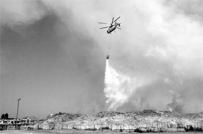 İtfaiye ekipleri helikopter ve arazözlerin yanı sıra