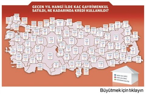 gayrimenkul satış işlemi yapılırken bunun 62 bin 72'sinde kredi kullanılmış.