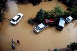 Sel sularına kapılan çok sayıda araç denize sürüklendi. Bu arada bazı