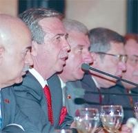 Partisinin 20 milletvekiliyle birlikte gazetecilerin karşısına çıkan MHP Büyükşehir Belediye Başkanı adayı Yavaş, Ankara’nın 2100 yılını planlayacak bir ekip kurmak istediğini açıkladı. MHP Ankara Büyükşehir Belediye Başkan Adayı Mansur Yavaş, "Uygun bir ekiple, lider yöneticilik yaparak kentin geleceğini planlamak istiyoruz. Kentin 2020, 2050 ve 2100’ünü planlayacak bir ekip kurmak istiyoruz" dedi. Yavaş, 20 MHP milletvekiliyle birlikte düzenlediği toplantıda, Ankara’ya yönelik projelerini anlattı. Yavaş, Kültür Bakanı Ertuğrul Günay’ın "Son 50 yıldır Ankara’ya vizyonu olan bir belediye başkanı gelmedi" sözlerini hatırlatarak şunları söyledi: "Gerçekten bir vizyon eksikliği söz konusudur. Uygun bir ekiple lider yöneticilik yaparak kentin geleceğini planlamak istiyoruz. Kentin 2020, 2050 ve 2100’ünü planlayacak bir ekip kurmak istiyoruz. Bilim adamlarıyla ünüversitelerle meslek odalarıyla işbirliği yaparak bunu gerçekleştirmek istiyoruz." Yavaş, suyun hala pahalı olduğunu savundu. Yavaş, "Belediyenin yaptığı bir çok şey sudan fahiş fiyatlar alınarak ASKİ’nin parasıyla yapılmıştır. ASKİ’nin kaynaklarından özel bir aile şirketi konumunda olan bir firmaya müthiş imkanlar sağlanmıştır. Gençlerbirliği, Ankaragücü, Hacettepe gibi üç kurum kendi hayatını zor devam ettirmekteyken, Ankaraspor’a müthiş bağışlar yapılmaktadır" dedi. Gazetecilerin sorularını da yanıtlayan Yavaş, Beypazarı çöplüğüyle ilgili basında yer alan haberlere ilişkin soruya "Haberlerden bir hafta öncesine kadar bizi çok başarılı bulan bir Gökçek’in yerine, bir hafta sonra ASKİ’nin kamyonlarıyla gazete dağıtan bir Gökçek geldi. Haberi kimin yaptırdığını biliyorum. Kimseye kırgın değilim fakat Ankara bu kirli siyasetten kurtulmak durumundadır. Rakiplerine çelme takan yarışmacıların, kırmızı kart göreceği kesindir. 29 Mart’ta da Gökçek kırmızı kartı görecektir. Allah onu ıslah etsin" cevabını verdi. |