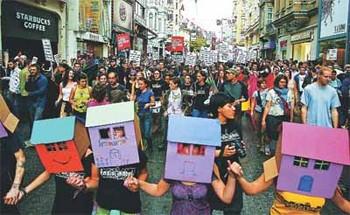 Kentin merkezini halka kapatmanın yanında banka camı kırmak nedir