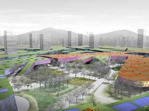 Asya’nın ciddi ekolojik sorunlarından yola çıkarak ‘Bazı çevresel kirlilik değerlerini optimize etmekten daha fazlasını yapabilir miyiz?’ sorusuyla harekete geçen New York meşei’li mimarlık grubu ShoP, Sektör 61 projesiyle önümüzdeki yıl inşaatına başlanacak bir high-tech kent tasarlıyor. Hindistan’ın Gurgaon bölgesindeki bu eski tarım kasabası, high tech ofis kampüsleriyle ve konut bloklarıyla sınırlanmış yoğun bir yapı koridoruna dönüştürülerek kabuk değiştirecek.