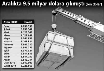 Şubatta ihracat 2009'un aynı ayına göre yüzde 20.3 artışla 8.2 milyar dolar