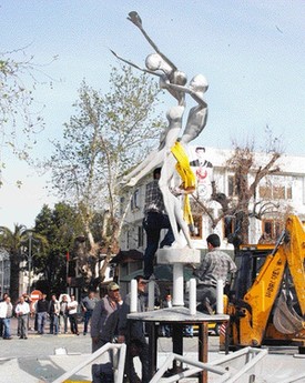 Mustafa Gül, ilk iş meydandaki aşk heykelini kaldırdı. Gül'ün müstehcen bulduğu