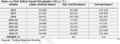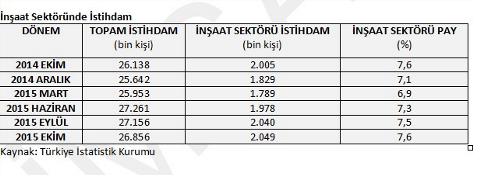 Konut satışları 2015 yılında yüzde 10,6 arttı 2015 yılında konut satışları beklentilerin üzerinde gerçekleşirken, yıl boyunca yaşanan siyasi ve ekonomik belirsizliğe rağmen satışlar yıl genelinde geçen yılın üzerine çıktı. Sonuçlara göre; 2015 yılında 1 milyon 289 bin 320 adet konut satışı gerçekleşerek geçen yıla oranla yüzde 10,6 arttı. 2015 yılında yüzde 10,5 artan ilk el konut satış rakamları 598 bin 667 olurken, ikinci el satışlar yüzde 10,7 yükselerek 690 bin 653 oldu. İnşaat malzemesi sanayi üretimi Kasım ayında yüzde 6,4 büyüdü Türkiye İMSAD’ın sektör raporuna göre Kasım ayında inşaat malzemeleri sanayi üretimi yüzde 6,4 artarak yılın en yüksek üçüncü büyümesini gerçekleştirdi. Ekim ayında yaşanan yılın en yüksek artışı sonrası inşaat malzemesi sanayi üretiminde büyüme Kasım ayında da devam etti. Böylece inşaat malzemeleri sanayi üretiminde görülen dalgalanma giderek istikrarlı bir büyüme sürecine girdi. İnşaat malzemeleri sanayi üretimi 2015 yılının ilk çeyreğinde yüzde 6,7 küçüldü, ikinci çeyreğinde ise yüzde 1,4 büyüme gösterdi. Üçüncü çeyrekteki yüzde 0,3 gerileme ardından son çeyrekte hızlı büyüme yaşanmaya başladı. Böylece yılın ilk 11 ayında inşaat malzemeleri sanayi üretimi geçen yıla göre yüzde 0,7 oranında arttı. 2015 yılı ilk dokuz ayında inşaat harcamaları 131,3 milyar TL oldu 2015 yılının ilk dokuz ayında toplam inşaat harcamaları geçen yılın ilk dokuz ayına göre cari fiyatlarla yüzde 6,6 artarak 131,3 milyar TL oldu. Kamunun inşaat harcamaları yüzde 3,3 artarak 46,4 milyar TL olarak gerçekleşirken, özel sektör inşaat harcamaları ise 2015 yılı ilk dokuz ayında cari fiyatlarla yüzde 8,5 artarak 74,9 milyar TL’ye yükseldi. 2015 yılının ilk dokuz ayında inşaat harcamalarındaki artış reel olarak negatif oldu. 2015 yılında özel sektör inşaat harcamaları artışı belirlerken, kamu inşaat harcamaları reel olarak gerilemeye devam ediyor. Yabancılara en çok konut satan şehir 7 bin 493 daire ile İstanbul oldu Yabancılara konut satışları 2015 yılında yüzde 20,4 artarak 22 bin 830 daire olarak gerçekleşirken, en çok konut satışı yapan şehir 7 bin 493 daire ile İstanbul oldu. Geçen yıla göre en yüksek artış İstanbul’da gerçekleşirken, yabancılara 6 bin 72 konut satışı gerçekleştiren Antalya’da ise yabancılara satışlar geriledi. Bin 501 konut satışı ile üçüncü sırada Bursa yer alırken, Yalova’da bin 425 konut satışı gerçekleşti. 2015 yılında en çok Körfez ve Arap Ülkeleri, Avrupa, Rusya ile Orta Asya ülkelerinden yabancılar Türkiye’de konut satın aldı. 2015 yılında en çok konut 4 bin 228 adet ile Irak vatandaşları, ikinci sırada 2 bin 704 adet konut ile Suudi Arabistan vatandaşları gelirken, onu 2 bin 36 konut satışı ile Rusya vatandaşları takip etti. İngiliz vatandaşları bin 54 konut satın alırken Alman vatandaşları 869 konut alımı gerçekleştirdi. İnşaatta büyüme ekonomik büyümenin altında kaldı 2013 yılı ile 2014 yılı ilk 3 çeyreğinde genel ekonominin üzerinde büyümenin üzerinde büyüyen inşaat sektöründe, ivme 2014’ün son çeyreğinden itibaren tersine dönmeye başladı. 2015 yılı üçüncü çeyreğinde inşaat sektörü yüzde 1,9 ile yine genel ekonominin altında büyüdü. İnşaat sektöründe istihdam 2,05 milyon kişi İnşaat sektöründe istihdam Ekim ayında 2,05 milyon kişi oldu. 2015 Ekim ayında inşaat sektöründeki istihdamın toplam istihdam içindeki payı da yüzde 7,6 olarak gerçekleşti. İstihdam geçen yılın Ekim ayı istihdamının üzerinde gerçekleşti. |