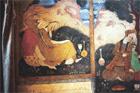 Kırk sütunlu köşk içindeki duvar resimleri son derece etkileyici. Kacar sülalesinin yerini alan Pehlevi ailesi, ilk iş olarak Şah Kacar'ın resimlerini tahrip etmiş.