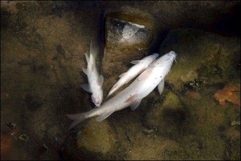 önemli olan çayda hayvan leşleri ve çöpler yüzüyor. |