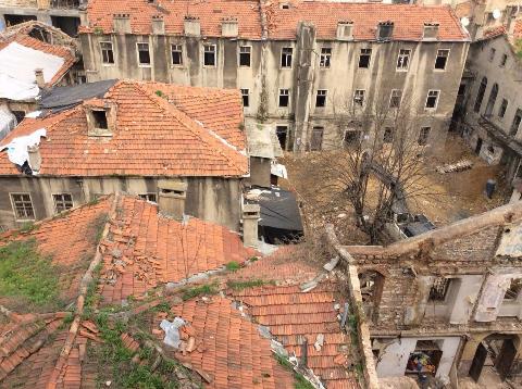 Beyoğlu'ndaki tarihi Narmanlı Han'da yürütülen restorasyon çalışmaları görüntülendi. Görüntülerde, binaların bir kısmının içinin tamamen boşaltıldığı, sadece dış duvarların kaldığı görülüyor.