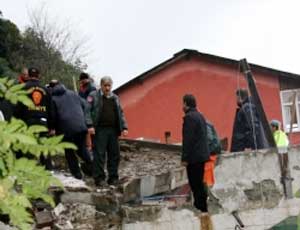 kopan dev kayalar, hemen altındaki iki evin üzerine düştü. Evlerden biri tamamen
