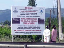 yaptırmayın" yazılı uyarı tabelalarıyla kaçak yapı sahibi ve yapmaya niyetlenen