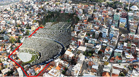 Agora ile Kadifekale arasında yer alan Roma Antik Tiyatrosu kazı alanı,