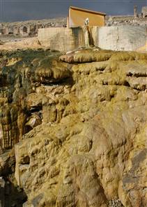 sonra yapay teraslar üzerinden termal su akıtılarak traverten oluşumu