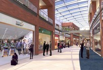 Çelik cam ve ahşap kullanılarak yüzyılın mimarisinin yansıtıldığı alışveriş