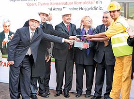 Karşıyaka Belediyesi, Atakent semtinde 3 bin metrekarelik kapalı alana sahip Opera, Tiyatro ve Konservatuvar Kompleksi'nin temelini attı. Karşıyaka Belediye Bandosu ve Karşıyaka Belediye Konservatuvarı Çok Sesli Korosu'nun müzikleri eşliğinde gerçekleşen temel atma töreninde konuşan İzmir Büyükşehir Belediye Başkanı Aziz Kocaoğlu, yapılacak kompleksin Karşıyaka'ya çok yakışacağını söyledi. Adnan Saygun Sanat Merkezi hayata geçtikten sonra bir opera binası için yer arayışına girdiklerini ve Karşıyaka Belediyesi'nin 24 bin metrekarelik bir alanı Büyükşehir'e tahsis ettiğini belirten Kocaoğlu, "İzmir Devlet Opera ve Balesi Müdürü Aytül Büyüksaraç'ın yakamıza yapışmasının büyük payı oldu. Karşıyaka Belediyesi'nin tahsis ettiği alanda Zübeyde Hanım Kongre Merkezi'ni yapacağız. Adnan Saygun'daki deneyimlerimizi de kullanarak teknik şartname hazırlanır hazırlanmaz proje yarışmasına çıkacağız" dedi. Temeli atılan komplekste çok önemli etkinlikler düzenleneceğini belirten Karşıyaka Belediye Başkanı Cevat Durak, "Temelini attığımız binanın arsası, Milli Emlak'a ait mezbelelik bir yerdi. Dört ay gecikmeli de olsa temeli attık. Yeni sanat merkezi, Karşıyaka'nın önemli bir ihtiyacını karşılayacak" diye konuştu. Üç katlı tasarlanan binada bodrum kat otopark ve sığınak olacak. Tesiste sergi salonuyla birlikte loca dahil, 672 kişilik salon bulunacak. 150 günde bitirilmesi hedeflenen bina, 3 milyon 300 bin TL'ye ihale edildi. Tesisin Genel Sanat Yönetmenliği'ni, Devlet sanatçısı Gürer Aykal üstlenecek. |