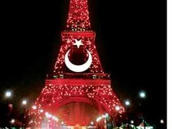 Fransa deyince ilk akla gelen sembol yapı "Eyfel Kulesi" 5 gün boyunca Türk Bayrağı'nın renkleriyle ışıklandırılacak. Dün akşamdan itibaren başlatılan etkinlik kapsamında, 300 metre uzunluğundaki dünyaca ünlü Eyfel Kulesi, adeta kırmızı-beyaz bir gelinlik giydi.