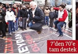 "Yönetimlerde Saltanata Son Gönüllüleri" Kızılay’da ezber bozan, alışılmamış bir eylemde bir araya geldiler. Ankara’nın tüm meydanlarının yok edilmesini protesto eden ve Kızılay’ın yayalaştırılmasını, yeniden meydan olmasını isteyen kent gönüllüleri, Ankaralıların da katılımıyla top oynayıp, ip atladılar. Güvenpark’ta toplanan grup üyelerine Türk