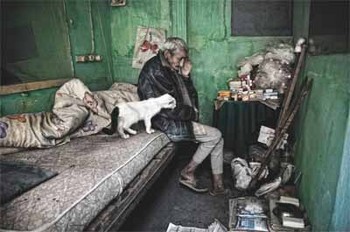 “hayatlarımız perişan” diyor. Odalarda yaşayan insanlara hep bir kedi eşlik
