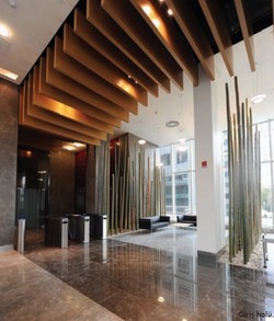 Bu plantasyonu taşıyan cephe çevresindeki konsol sistemi ile birlikte iki kat yüksekliğindeki iç bahçeler binanın her yönde nefes almasını, taze havanın katlar boyunca dolaşımını sağlıyor. Yerleri iki katta bir değişen bu iç bahçeler doğal havalandırma sağlayan galeriler.