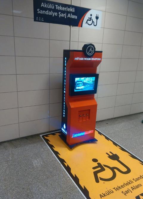 Hayata geçirilen bu uygulama ile metro araçlarına binmek için akülü araçlarıyla istasyona gelen engelli yolcular şarj cihazı bulunan alana giderek rahatlıkla aküsünü şarj edip yolculuğuna devam edebilecek. Engelli vatandaşların ücretsiz olarak kullanabilecekleri ‘Akü Şarj Üniteleri’; M1 Hattında Aksaray, Yenibosna, Kocatepe, M2 Hattında Yenikapı, Gayrettepe, Levent, Şişli, M3 Hattında Kirazlı, M4 Hattında Kadıköy, Ayrılıkçeşmesi, Bostancı olmak üzere toplam 11 istasyonda hizmet veriyor.